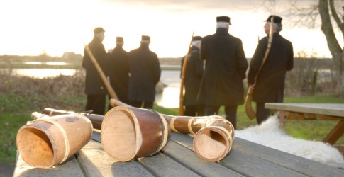 De Riessense Mirreweenterhoornbloazers laten 'n Oaln Roop horen in de omgeving van Pelmolen Ter Horst en vanaf de omloop.