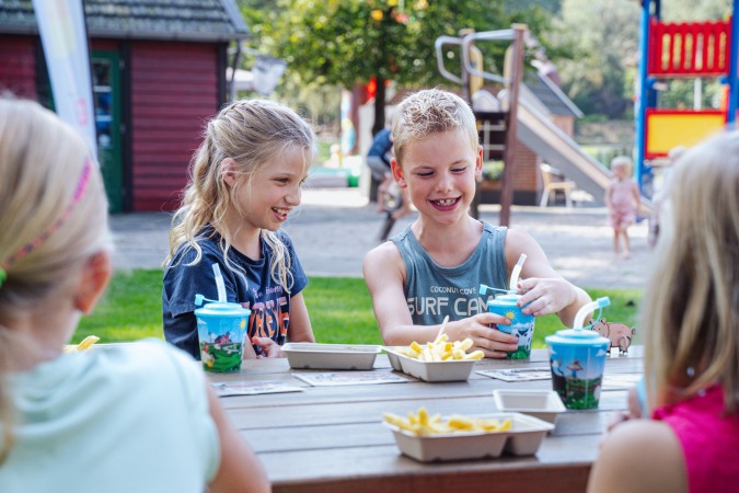 Heerlijk ontspannen terwijl de kinderen zich uitleven in de speeltuin, ook dat hoort bij een dagje uit. De speelboerderij beschikt over een ruim schaduwrijk terras. Je hoeft geen eten of drinken mee te nemen. In de horeca is van alles te verkrijgen, zoals koffie, fris, snacks en (soft)ijs. Uiteraard wordt er ook heerlijke patat gebakken. De speelboerderij is gelegen aan prachtige wandel- en fietsroutes, en daardoor ook uitermate geschikt als start of rustpunt.